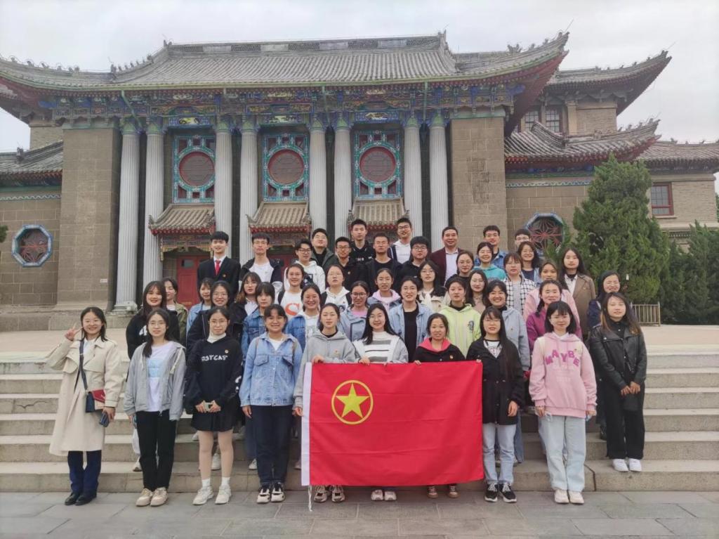 的国宝之一——开封铁塔,详细地介绍了开封铁塔的来历及惊险经历。在文物馆时,史富强对文物馆中收藏的诸多文物进行介绍并讲述文革时期河大教师购入并保护文物的故事,同学们听后不禁为他们的智慧与先见拍掌叫好。在七号楼前,他向同学们介绍了七号楼的来源及发展变化,并幽默地讲述他在七号楼的学习经历,同学们入神听讲,仿佛置身七号楼内感受数十年前的河大风采。一路穿过牡丹园,他一边带领着同学们欣赏校园内的红牡丹,一边介绍牡丹园的来由——河大农学系教师与百姓的故事,同学们看着胜放的牡丹纷纷驻足留影。驻足校歌碑旁,他又陈述了校歌的缘来,并不由自主地朗诵起校歌,看着气势磅礴的歌词,同学们也颇为动情。最后来到大礼堂,他自豪地向同学们陈说着大礼堂的历史渊源以及他与大礼堂之间的趣事,在这古老而磅礴的建筑前,大家一起合影留念,本次学习之旅到此进入尾声。