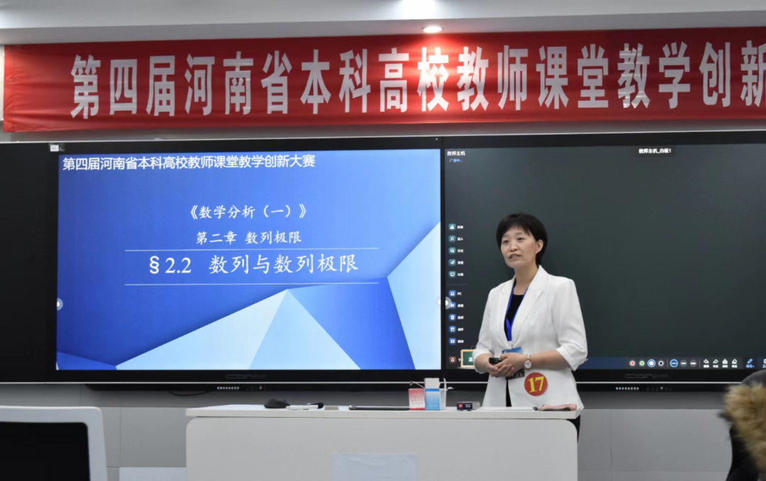 三尺讲台之上,一位老师身着白色西装,留着干练的短发,神采飞扬地讲解着“数列与数列极限”问题,她的讲解条理清晰、深入浅出,在课程结束后赢得一片掌声。她便是第四届河南省本科高校课堂教学创新大赛教授组特等奖获得者、正妹av