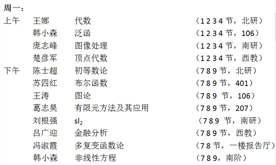 2018年上半年讨论班一览