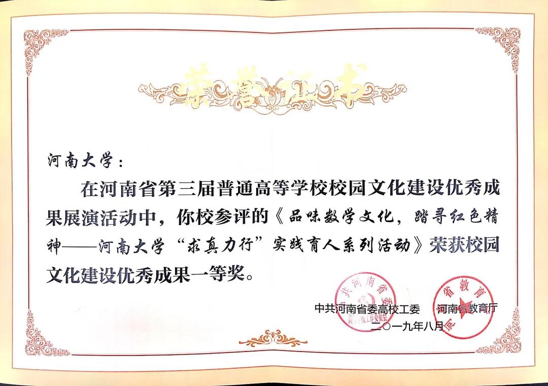 “求真 力行”实践育人系列活动荣获河南省第三届普通高等学校校园文化建设优秀成果一等奖