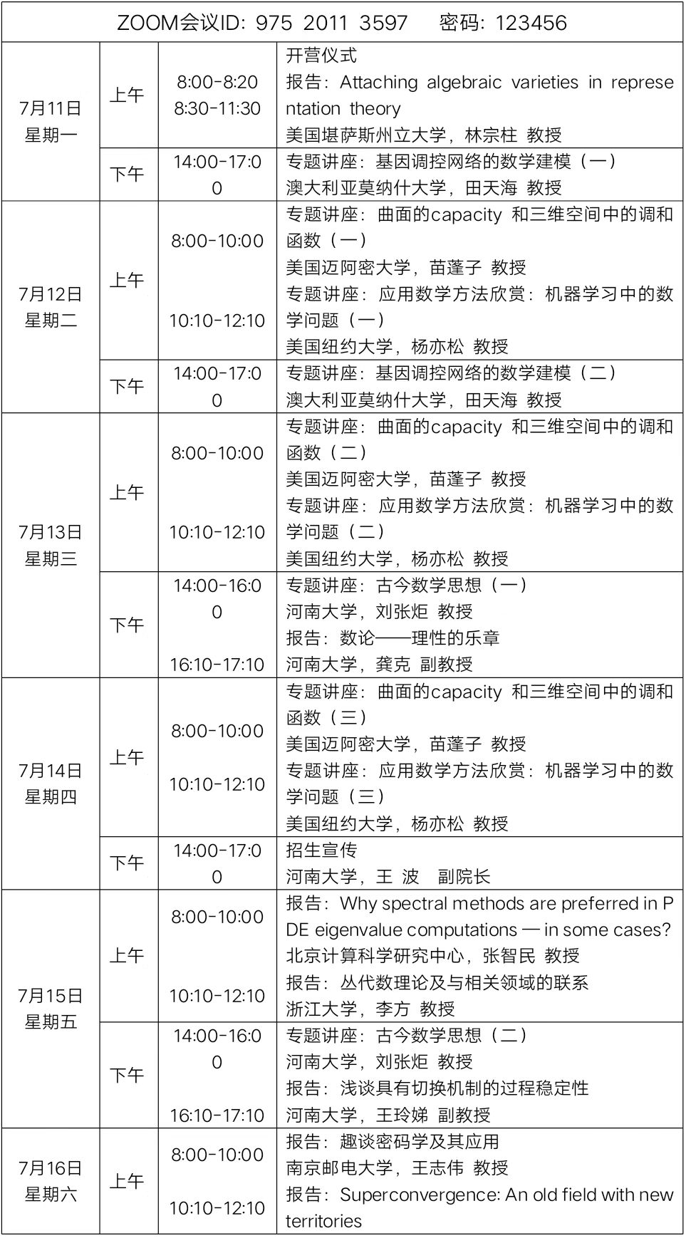 拟定于2022年7月11日—7月16日举办大学生数学夏令营(ZOOM视频在线进行)。本次夏令营计划在全国高校范围内招收100名数学、统计学及相关专业的高年级本科生。夏令营期间将通过学术讲座、学院宣讲、导师交流等活动,旨在打造数学和统计学的学习与交流平台,同时展示我院在数学、统计等领域所取得的重要研究成果,使学生了解我院的学科发展特色和研究生培养模式。