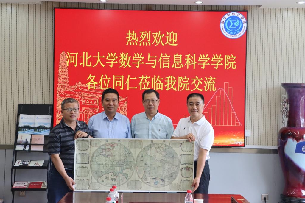 7月9日上午,河北大学数学与信息科学学院院长高红亚、党委书记纪爱兵、副院长苏珂、科研科长马红艳、数学系主任张谦一行5人来到我校正妹av