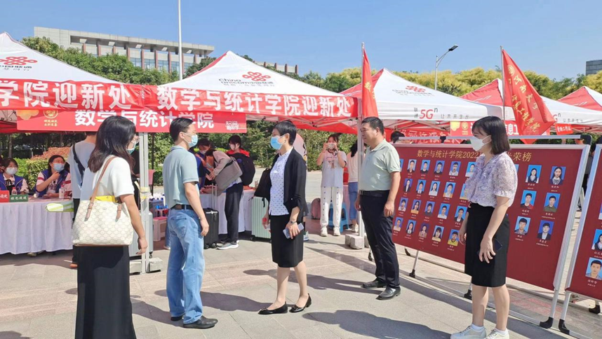 学校党委常委、副校长冯淑霞,副校长张立新,党委学生工作部部长、学生处处长沙莎检查和指导我院迎新站点新生报到的各个环节和疫情防控等工作,与新生亲切交流并慰问奋战在一线的学生志愿者们。