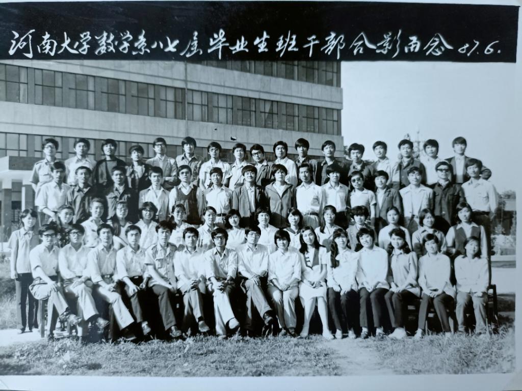 当年,有一段戏言形容各系的学生:中文系,文里文气;英语系,洋里洋气;数学系,呆里呆气;历史系古里古气;地理系,土里土气;……。实际上有失偏颇,我们学数学的是很有灵气的,很多同学不仅学习好,而且爱好广泛、多才多艺。不少同学篮球打得特别好,如年级长于吉亮、镇平老乡王其如(现中山大学教授)等;不少同学象棋水平很高(有一次年级象棋比赛,我只侥幸赢了一盘),有的还会下围棋。男生中魏中星、于吉亮、万永鹏、张坤岳、陈志伟、丰小芳、黄俊克等同学的字写得很漂亮,女生中蔡娟会拉二胡,冷智慧等同学歌唱得特别好。有的组织领导能力很强,如魏中星、胡海华、于吉亮、辛占香、赵香兰等很多同学,参加工作后他(她)们果然都当上了校长、书记、局长、主任等,其中我知道老魏是高中校长,占香留校曾任数学学院书记,海华是信阳师范学院副院长,王喜平是南阳理工学院汽车工程学院书记(我每次去南阳见喜平君,他都请我吃饭 ,把我的事当做自己的事情办,很感谢他),晓辉先后任淅川一高校长、淅川教体局局长。毕业时就考上研究生的同学有张开广等。留校任教的同学有辛占香、李文权,李武立、田维胜、于吉亮、徐琛梅、刘新仕、杨远根、曹中军等,后来董拴成、杨凤娟、屠巧平等同学深造后也回到河大工作,他(她)们为母校的发展做出了突出的贡献,为数学系83级争了光!