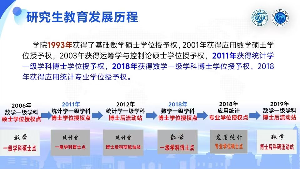 学院拥有数学和统计学两个一级学科博士学位授权点和博士后科研流动站,学科教学(数学)和应用统计两个专业硕士学位授权点。学院开设有数学与应用数学、信息与计算科学、统计学、金融数学等四个本科专业以及 “明德计划”数学与应用数学专业拔尖人才实验班。