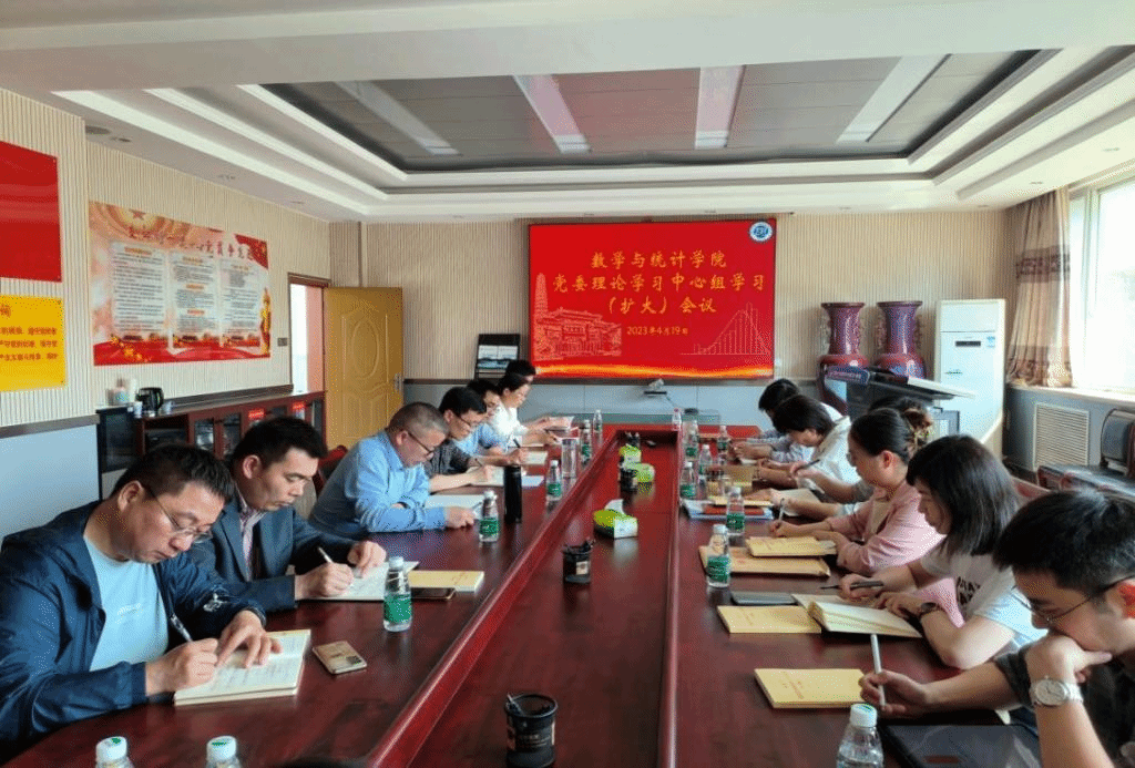4月19日下午,河南大学数学与统计学院党委在学院二楼会议室召开理论学习中心组学习(扩大)会议。学院领导班子成员、党委委员、师生党支部书记和科级干部参加本次会议。会议由党委副书记赵红磊主持。