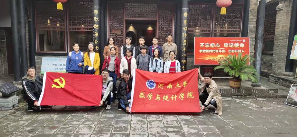 2019年10月12日上午,河南大学数学与统计学院本科第一学生党支部全体党员同志在支部书记吴苏苏老师的带领下,来到开封市爱国主义教育基地——刘少奇开封陈列馆和刘青霞故居纪念馆,开展“不忘初心、牢记使命”主题教育,共同追忆革命故事,缅怀先烈。