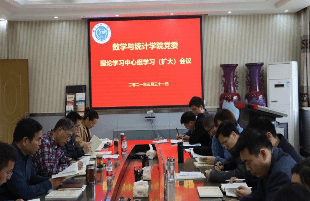 2021年是中国共产党成立100周年,也是“十四五”规划的开局之年。为了进一步加强思想政治引领,做好意识形态工作,3月31日上午,数学与统计学院在院二楼党建活动室召开党委理论学习中心组学习(扩大)会议。学院党委委员、班子成员、组织员和各党支部书记参加会议。会议由院党委书记史富强主持。