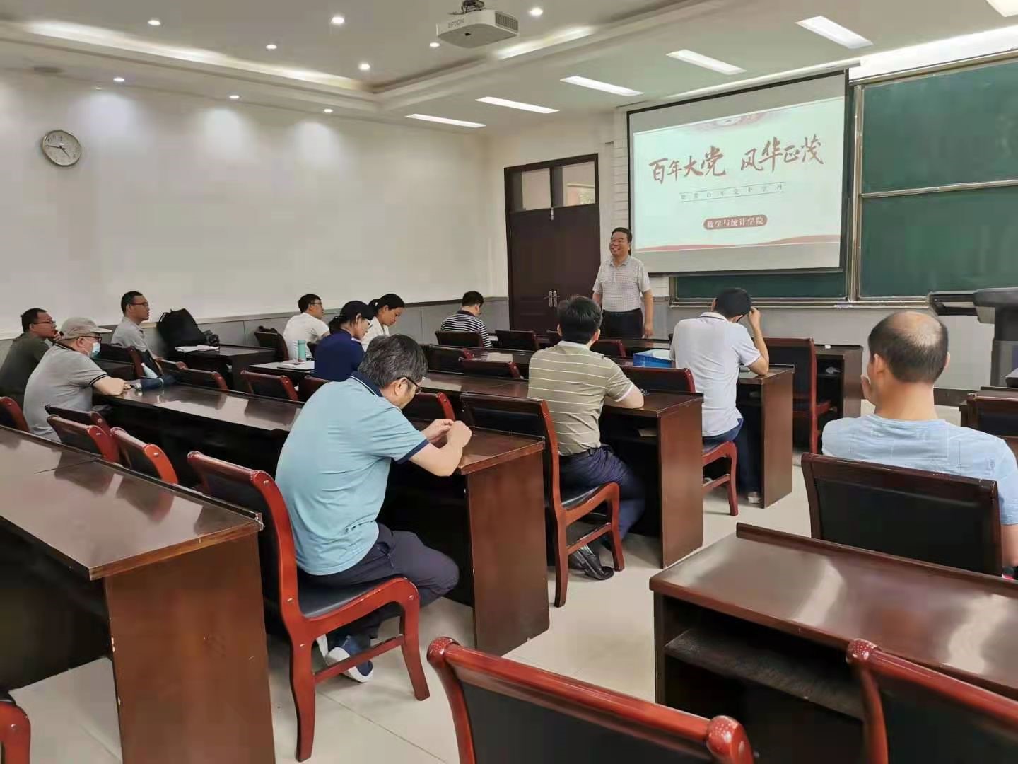 为充分发掘校史中的红色资源,继续深化党史学习教育成效,6月17日下午,我院数学系党支部、应用数学系党支部和统计系党支部在学院一楼报告厅联合开展了党史学习教育,学院党委书记史富强应邀为教工党员讲述校史中的红色基因。