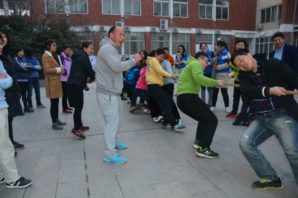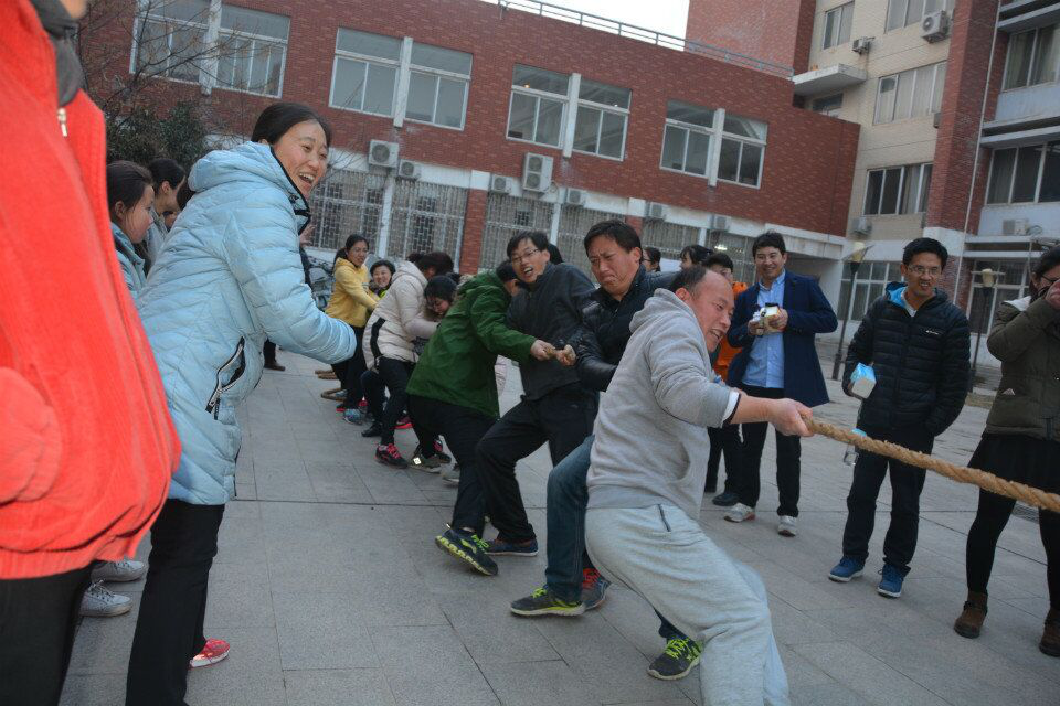 最后的拔河环节中,老师们使尽浑身解数,双方都毫不示弱,赛场上喝彩声此起彼伏。
