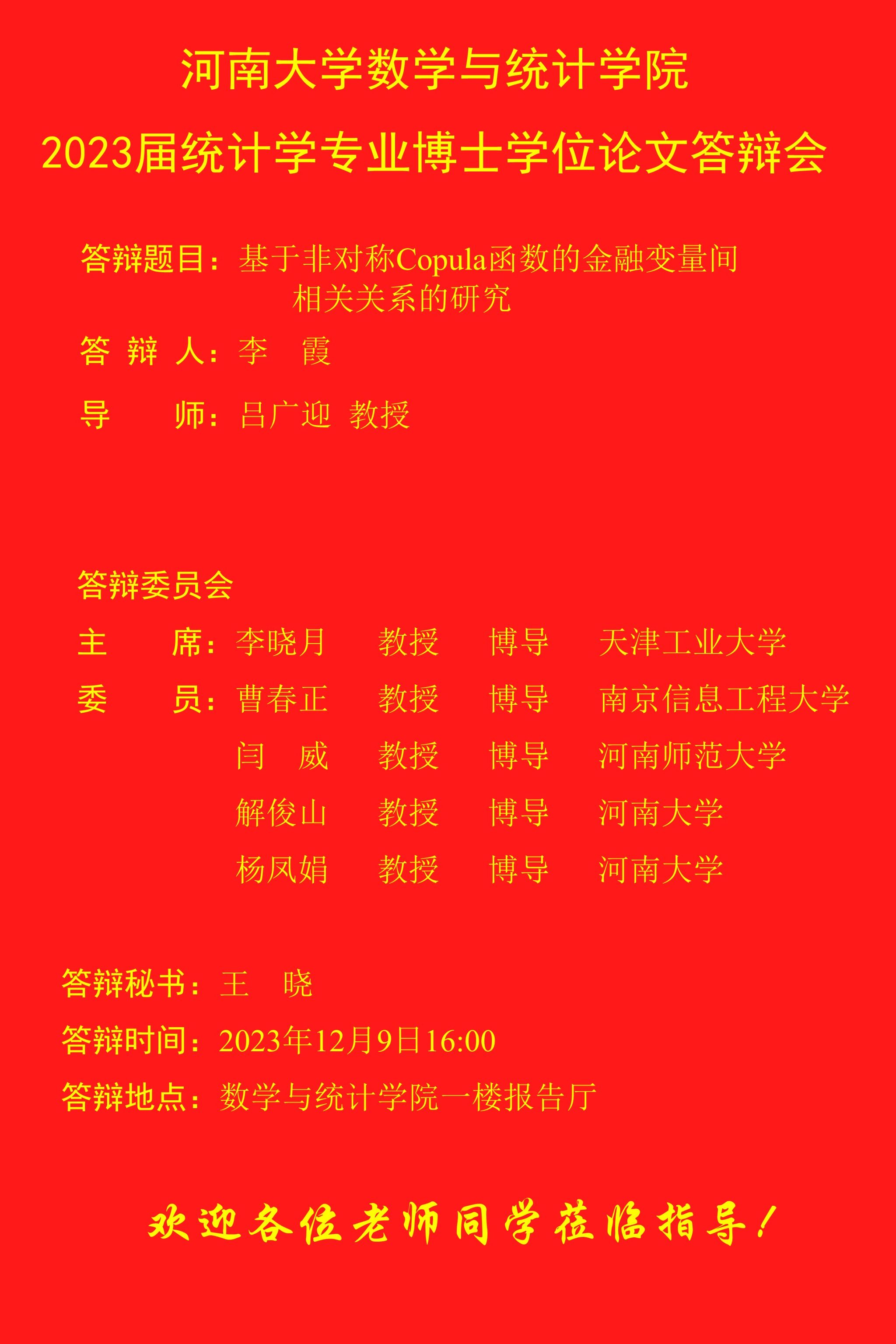 河南大学数学与统计学院2023届统计学专业博士学位论文答辩会
