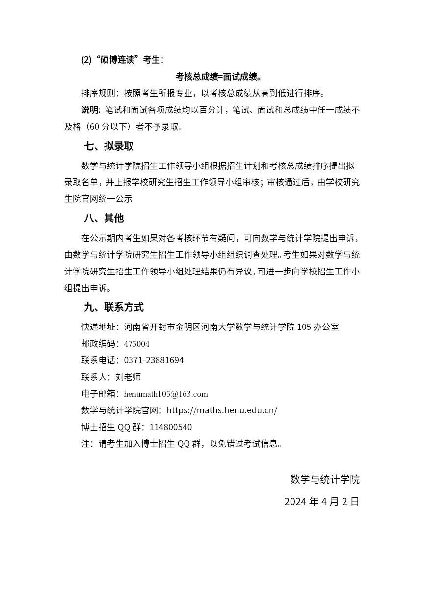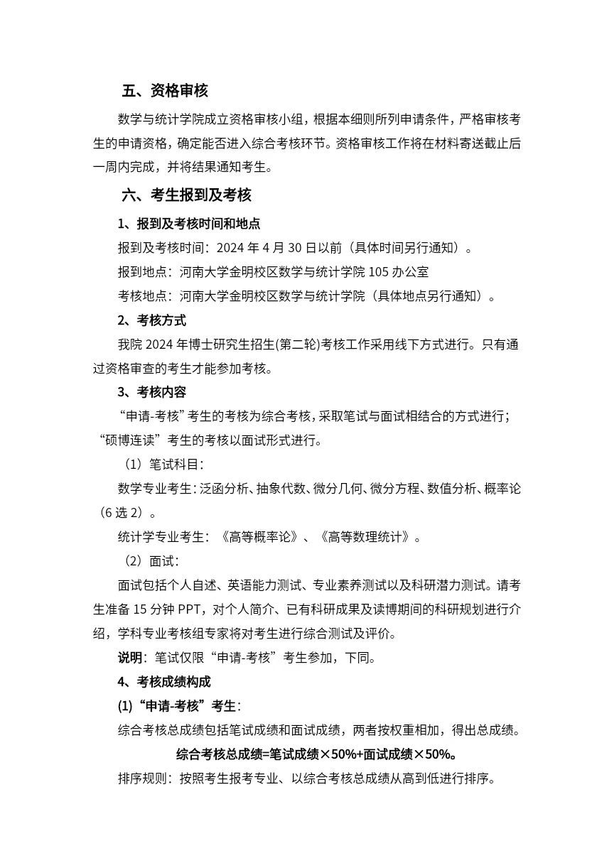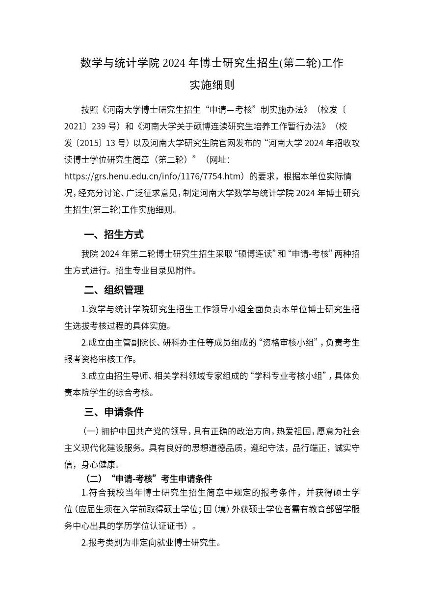 数学与统计学院 2024年博士研究生招生(第二轮)工作实施细则