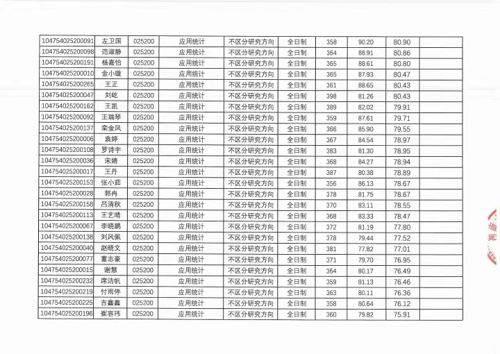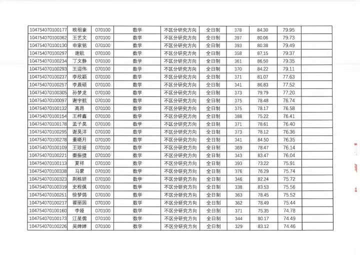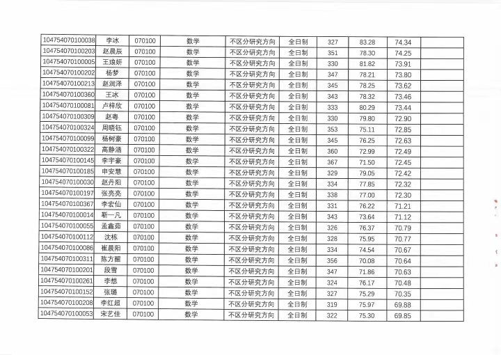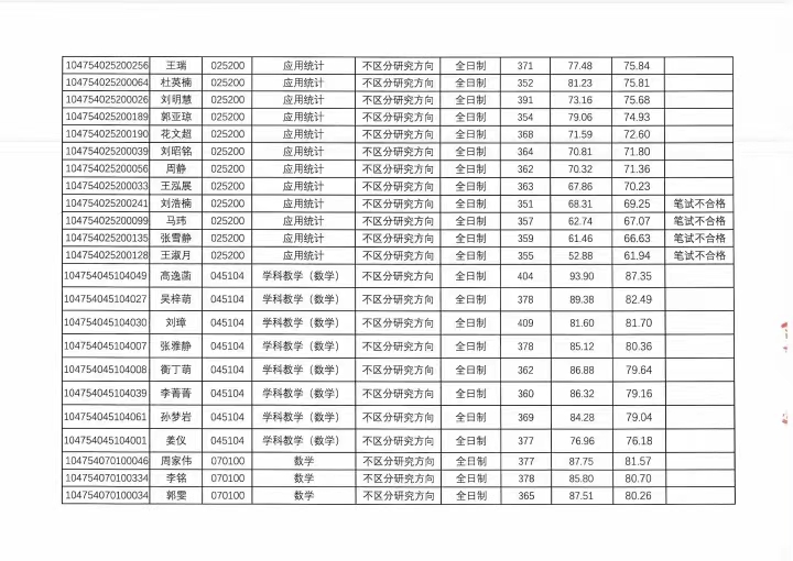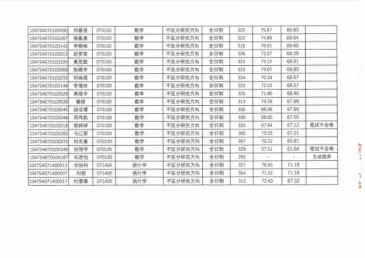 河南大学数学与统计学院2024年硕士研究生复试成绩登记册