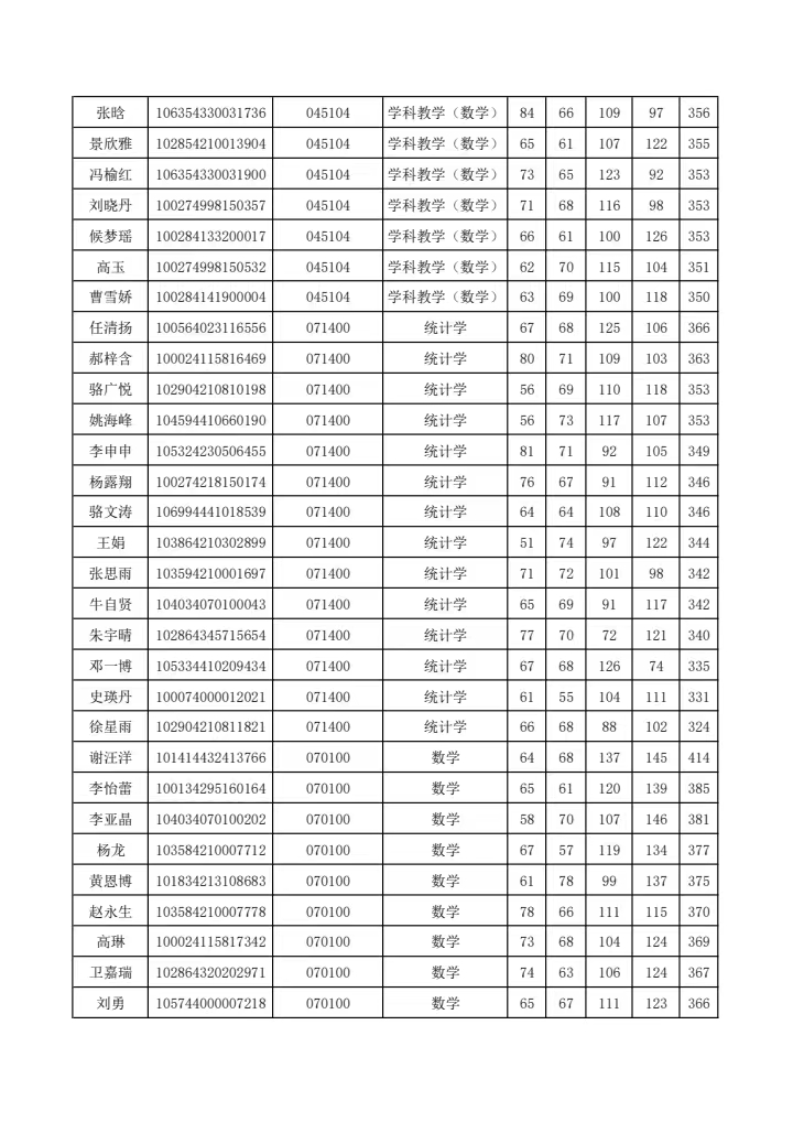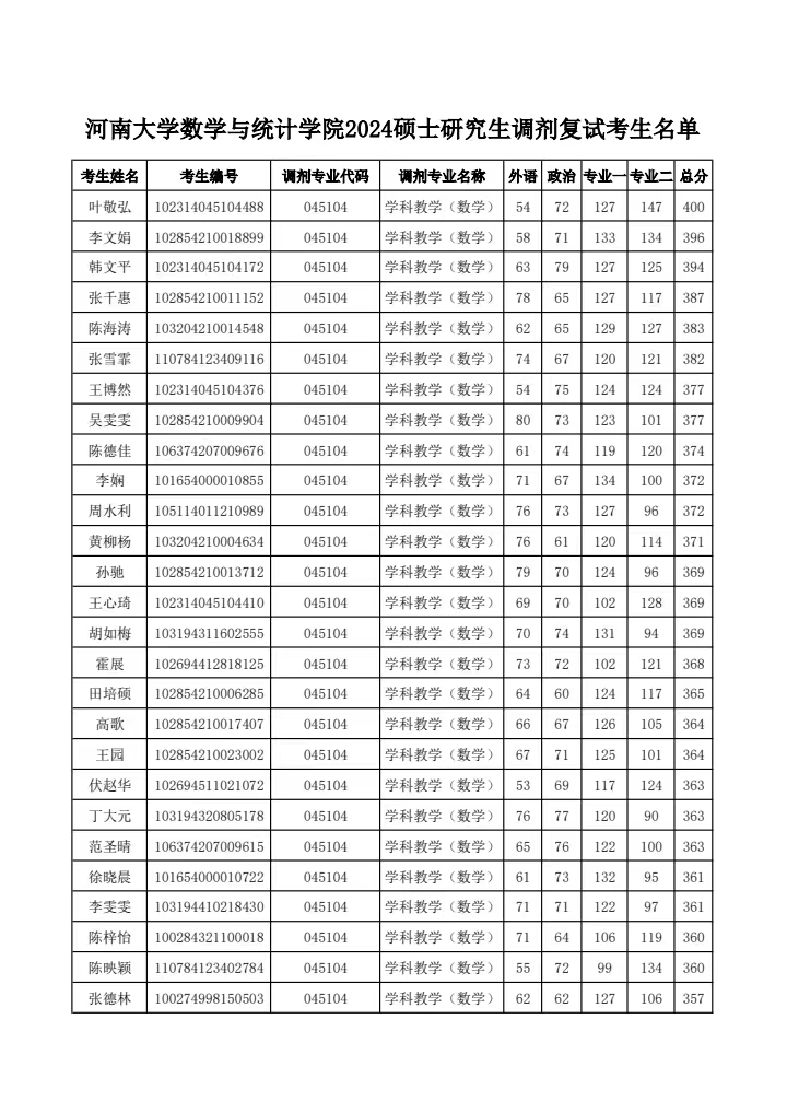 河南大学数学与统计学院2024硕士研究生调剂复试考生名单