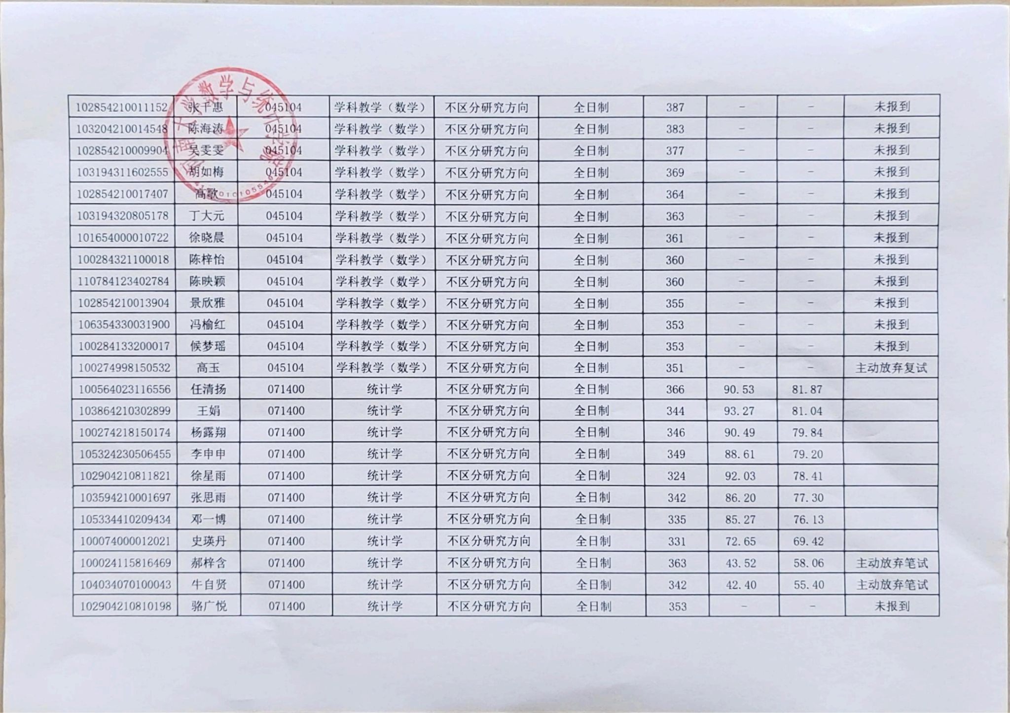 河南大学数学与统计学院2024硕士研究生调剂复试考生名单