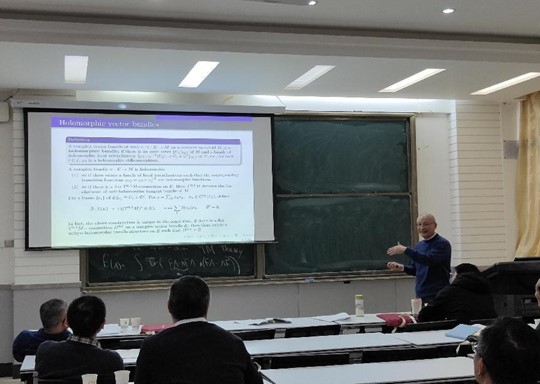 胡泽军针对仿射微分几何中的一些偏微分方程问题进行报告,在回顾仿射微分几何理论的基础上,概要总结了关于完备仿射超球面的分类研究和仿射极大超曲面的伯恩斯坦问题研究,最后介绍了他们近期取得的研究成果。