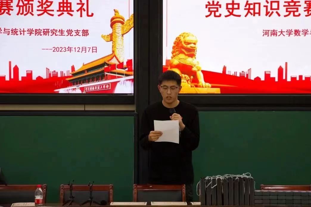 为进一步提升党员政治理论水平、强化党性教育,营造浓厚的学习氛围,调动同学们的学习主动性和积极性,10月25日-12月8日,数学与统计学院研究生第一党支部组织举办了研究生“重温光辉历程,传承伟大精神”主题党史知识竞赛,学院研究生党员和入党积极分子200余名同学参与了本次答题竞赛活动。