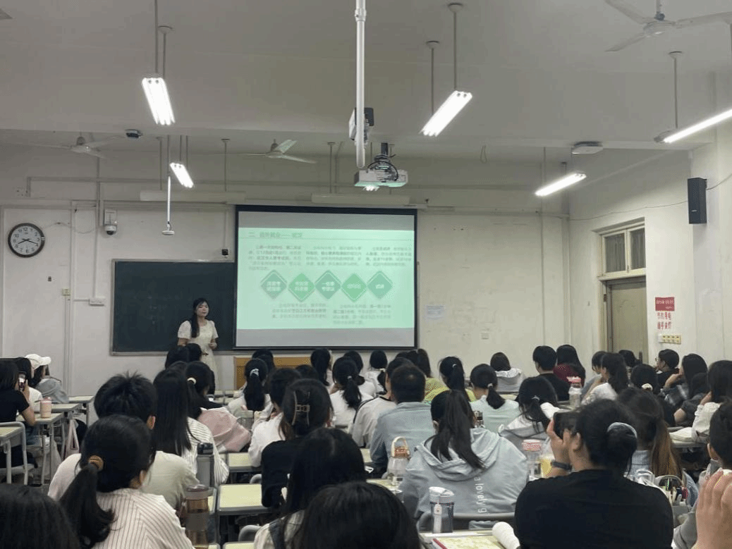 为进一步提升本科师范生的培养质量,数学与统计学院于6月7日在综合楼3408教室举办了一场主题为“智慧引领,乘风破浪”的数学教师求职经验分享交流会。本次交流会由学院数学教育方向带头人张玉环老师组织,参会人员有2021级和2022级数学与应用数学专业近百名学生。