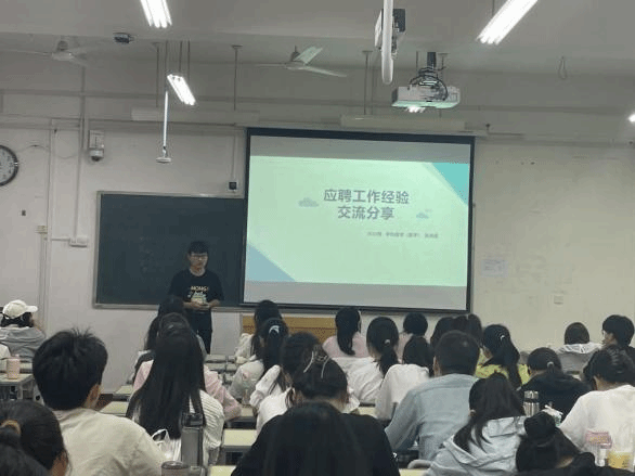 会上,四位毕业生从明确求职目标、求职信息搜集和简历撰写技巧、应聘试讲、面试技巧、职场礼仪以及心态调整等方面,为即将开启求职之旅的学生提供了诸多宝贵的意见建议。如在求职前,应仔细考虑自己的兴趣、能力和职业规划,明确自己想要从事的教育阶段和地区;简历要简洁明了,突出自己的教育背景、实习经历和教学技能,更要注意突出自己的亮点和特色;在试讲时要表达准确,把握“三个明白”,即表达要使自己明白、使学生明白、学生容易明白;在面试时,充分准备、精心设计以及自信表达都至关重要。在互动环节,参与学生们积极提问,毕业生们耐心解答,现场氛围热烈而融洽。