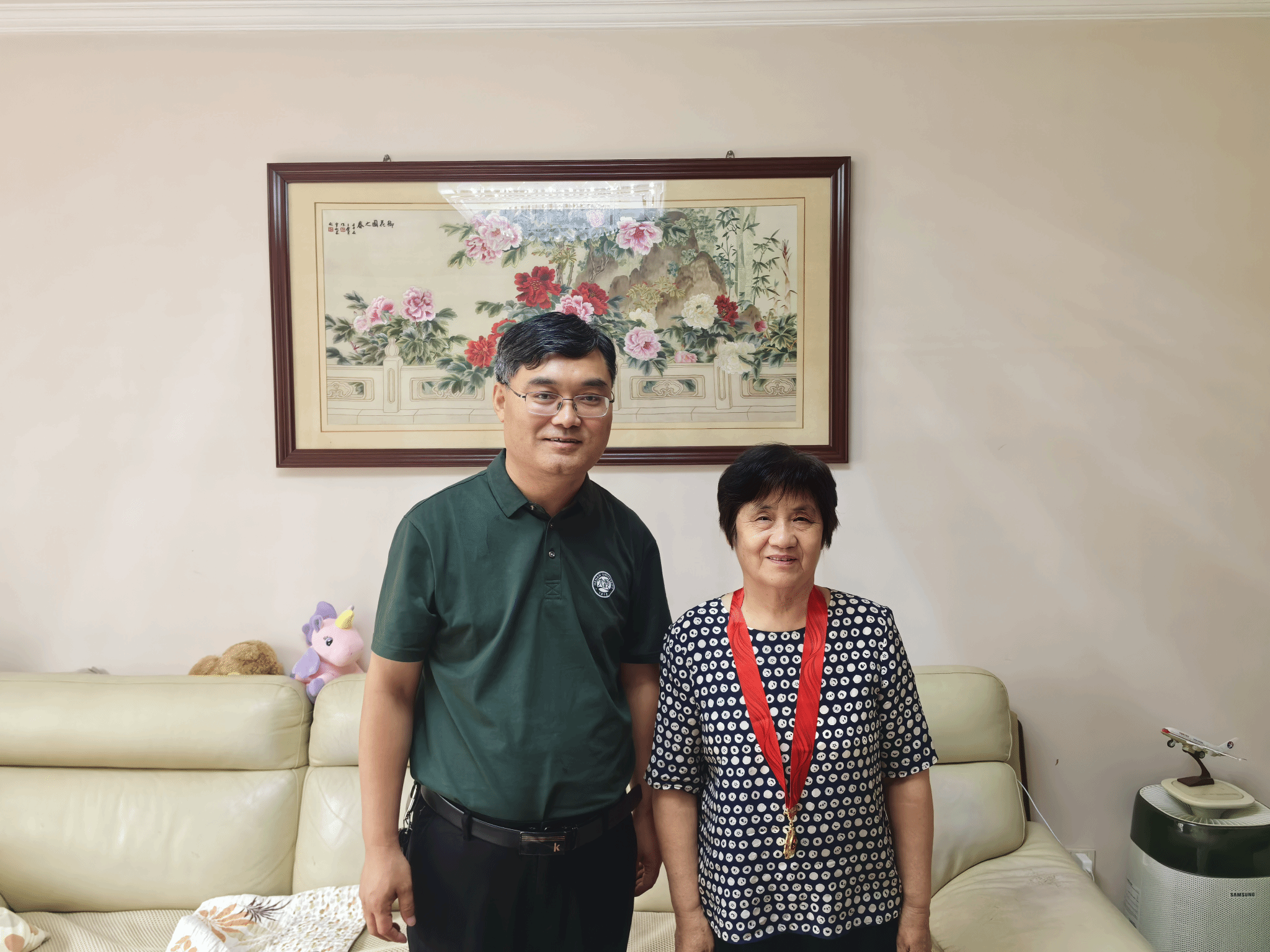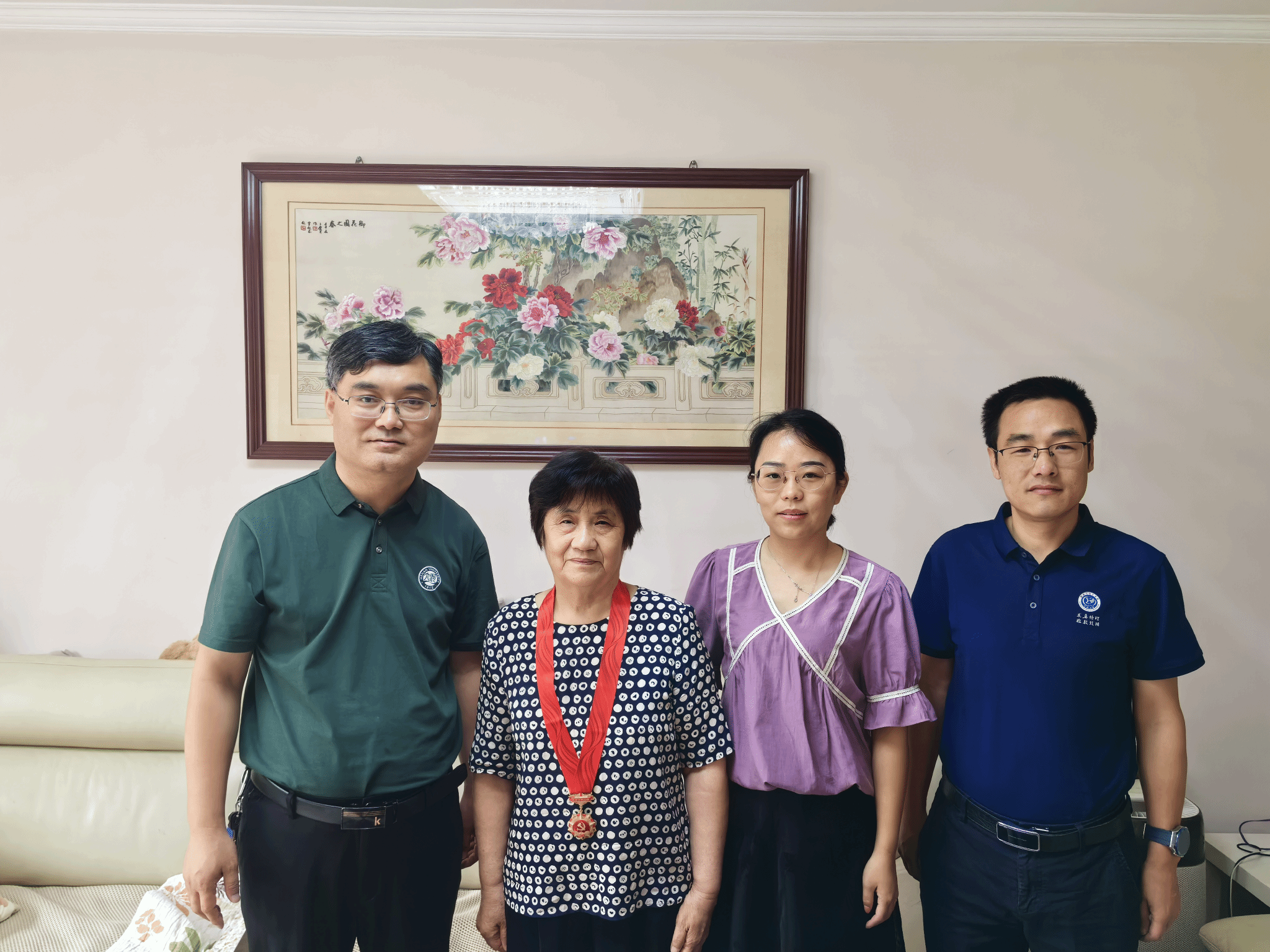 为让老党员同志切身感受到以习近平同志为核心的党中央的关怀和温暖,增强老一辈共产党员的荣誉感、使命感和归属感,让年轻党员传承老一辈共产党员的光荣传统和优良作风,进一步坚定信念,凝聚力量,为学校创新发展接续奋斗。7月1日上午,数学与统计学院党委书记曹志伟、副院长杨一平、党委办公室主任吴苏苏、行政办公室负责人霍东东一行,前往退休老党员贾兴琴老师家中看望慰问并颁发“光荣在党50年”纪念章。