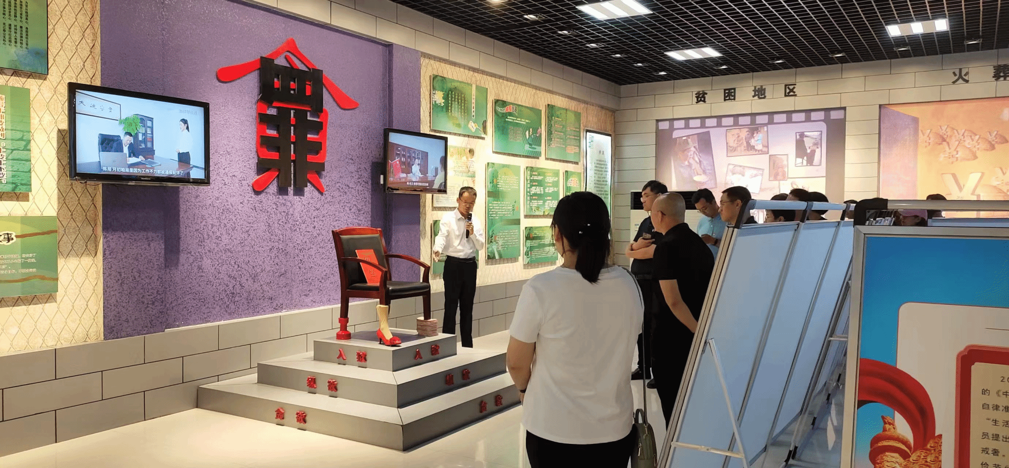 在基地讲解员带领下,大家依次参观“党与腐败,水火不容”、“清正廉明,万古流芳”、“警钟长鸣,引以为戒”、“剖析根源,诱因可鉴”、“重拳出击,惩腐肃贪”、“学法懂法,遵纪守法”、“惩防并举,共建和谐”、“全球反腐,无处可逃”等八个展区组成的廉政教育展览。通过生动的图文资料、典型的案例介绍,全体师生党员系统了解了我国反腐倡廉建设的历史进程,学习了廉政模范人物的先进事迹,切身体会到了我国反腐败斗争的坚定决心与成效措施,深刻认识到要以案为鉴,不断提升自身党性修养。