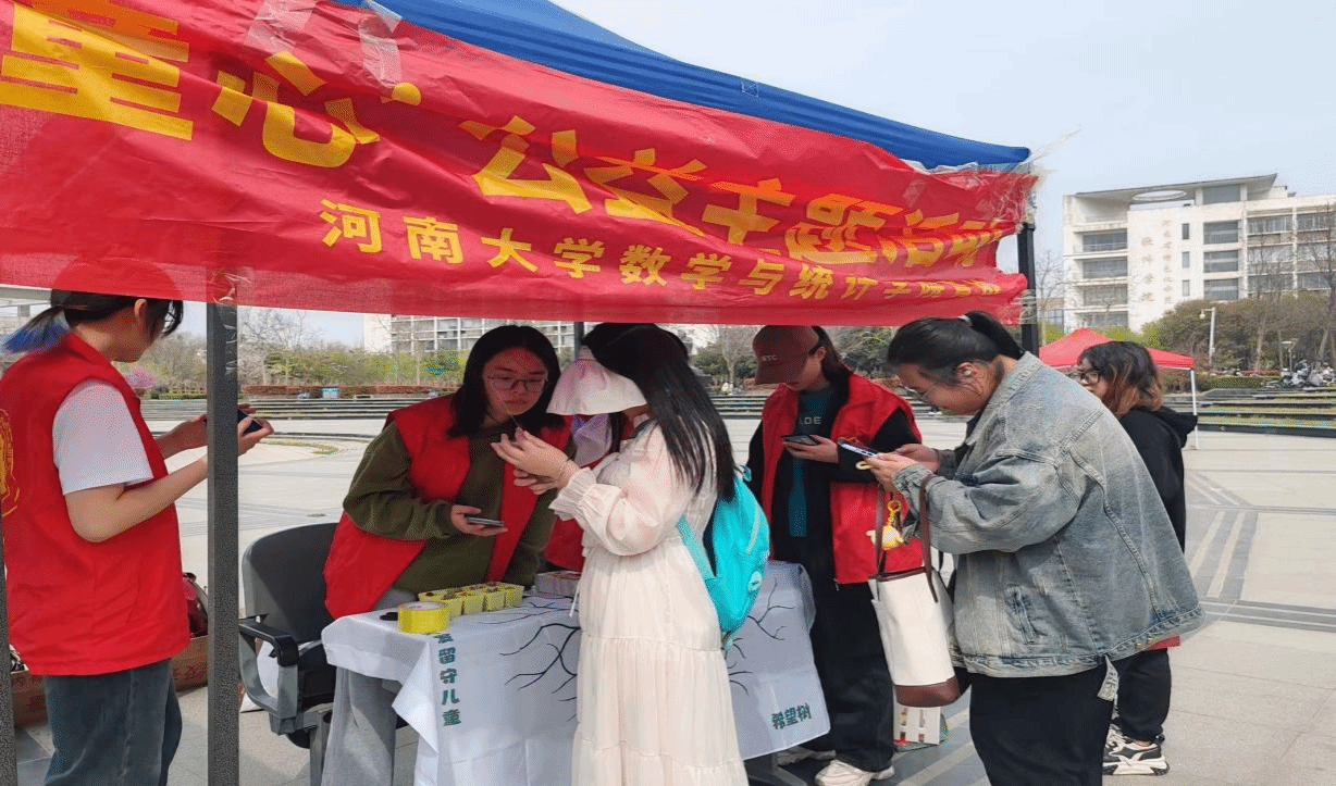 为引导高校学生关注并亲身参与到守护和完善农村留守儿童成长环境的工作中,帮助这一特殊的未成年人群体茁壮成长。3月31日至4月10日,河南大学数学与统计学院青年志愿者协会举办了以“温暖同行,情暖童心”为主题的公益活动。活动地点位于金明校区下沉广场,共有37名志愿者组织开展,500余名河大学子参加。