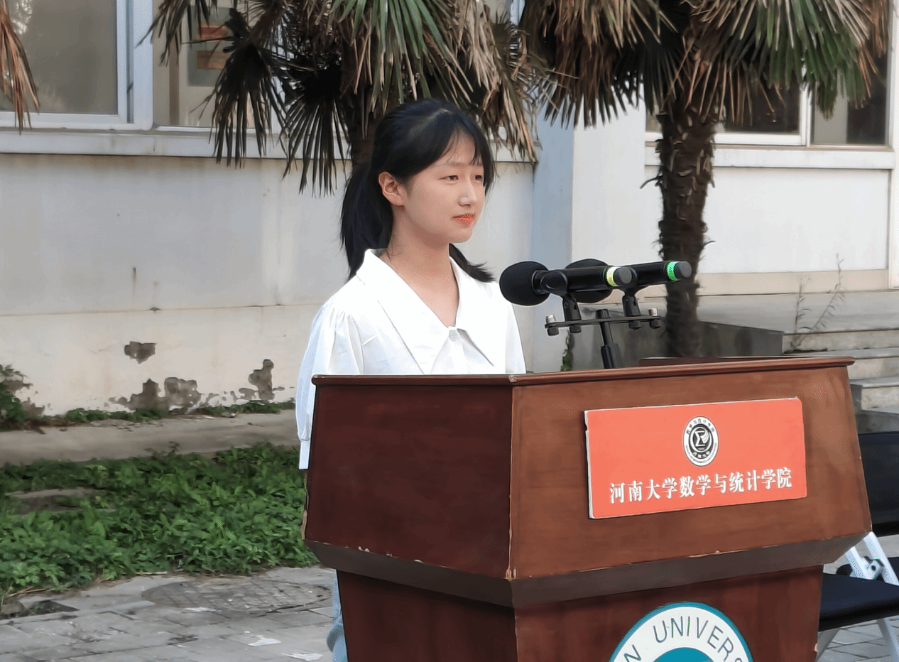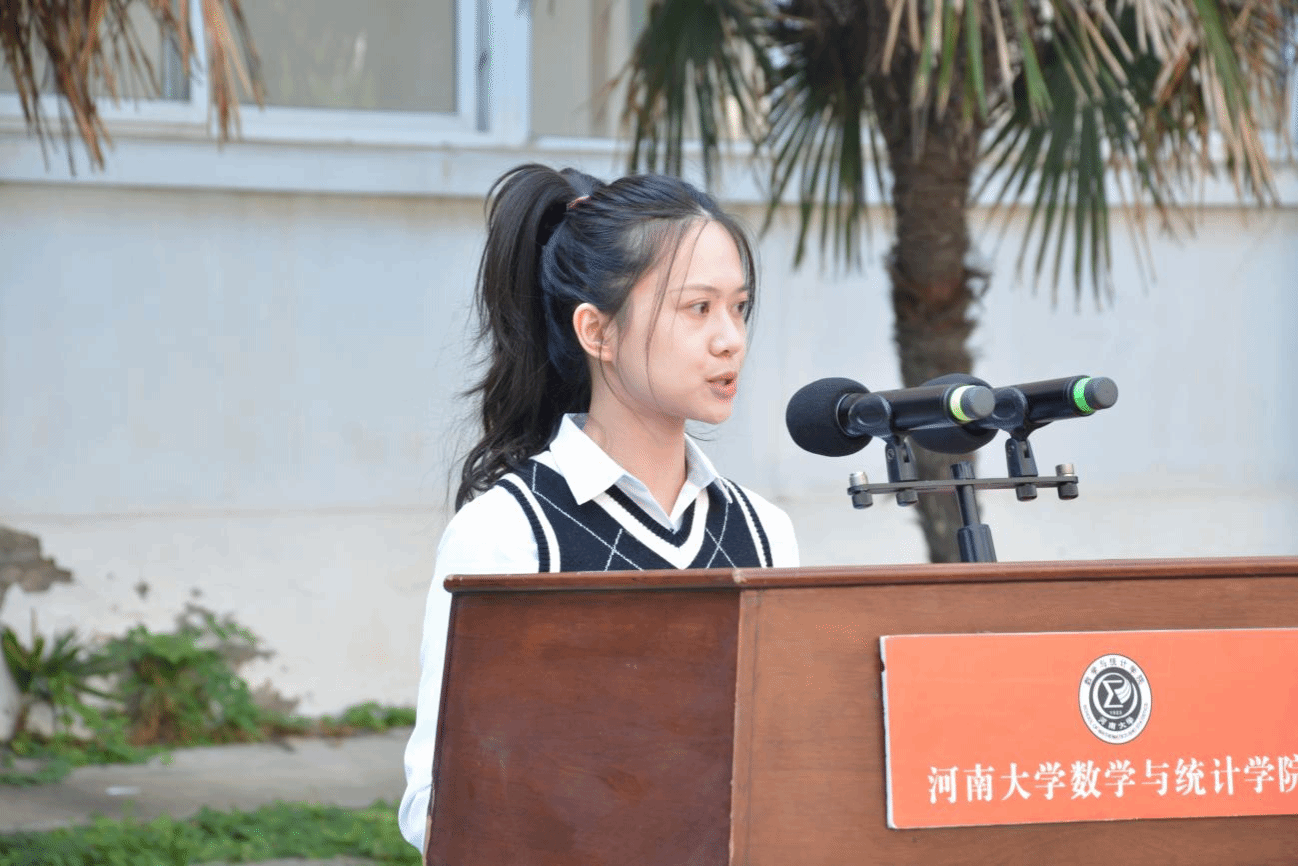 2022级本科生李雨涵作为在校生代表发言,她向学弟学妹分享了三句话:认识自己,做好规划,平衡社团与学习;坚持学习,勇于创新,克服数学枯燥,成中流砥柱;注重实践,参加竞赛与活动,提升自我。
