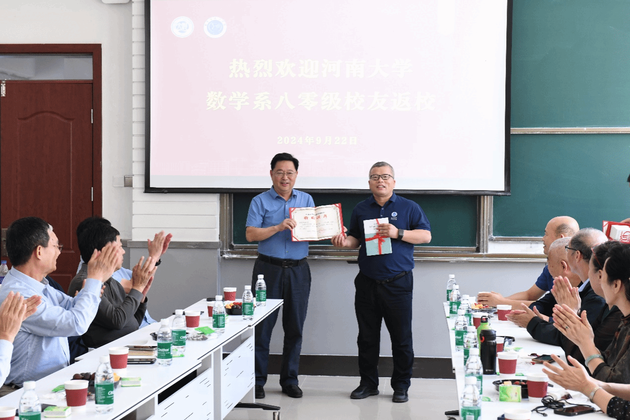 时光荏苒,岁月如梭,弹指一挥四十载。9月21日至22日,河南大学数学与统计学院80级校友四十余人从祖国四面八方重聚母校,参加毕业四十周年返校活动,共忆青春故事,共话师生情谊。学院党委书记曹志伟,院长韩小森,副院长杨一平、解俊山,教师代表刘秀英、李育生、刘建中等参加活动。