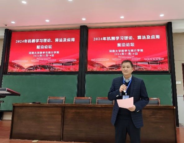 11月10日,由河南大学数学与统计学院主办,河南省人工智能理论及算法工程研究中心(AITA中心)承办的2024年机器学习理论、算法及应用前沿论坛在学院成功举办。受邀出席论坛的专家有:中国科学院高小山研究员、中国科学院闫桂英研究员、武汉大学杨志坚教授、西安交通大学孟德宇教授、中国科学院张世华研究员、深圳大学鲁坚教授和武汉大学焦雨领教授等。学校职能部门领导、学院领导,AITA中心团队骨干和百余名研究生等参加会议。论坛开幕式由院长韩小森主持。
