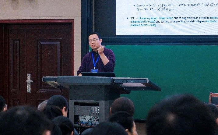 学术报告环节,专家们围绕机器学习理论、算法及应用展开交流,先后带来了“深度学习泛化与安全的数学理论”、“MLR-SNet (Meta-LR-Schedule-Net): Transferable LR Schedules for Heterogeneous Tasks”、“人工智能与科研范式变革:从实践到理论”、“Unsupervised Transfer Learning via Adversarial Contrastive Training”、“Understanding Data by Graph Theoretic Approaches”、“高精度地图制作中的智能算法与数学理论”、“Low-rank Matrix/Tensor Regularization Based Models for Image Restoration”等7场精彩纷呈的报告。报告内容前沿、深入浅出,现场与会师生讨论热烈,学术交流气氛活跃。