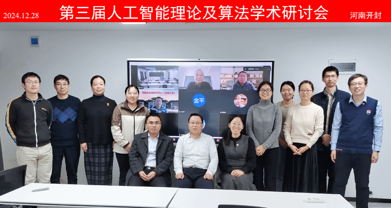 由河南大学数学与统计学院主办,河南省应用数学中心(河南大学)和河南省人工智能理论及算法工程研究中心联合承办的“第三届人工智能理论及算法学术研讨会”于2024年12月28日在开封市八大街河南大学数学研究中心812会议室成功举行。本次会议是河南大学数学与统计学院人工智能理论及算法研究团队的系列学术活动之一,会议每年举办一届,旨在推动人工智能领域的研究交流和合作,促进学术成果的分享与创新。