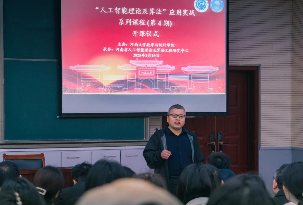 3月15日上午,河南大学“人工智能理论及算法”应用实战系列课程(第4期)在数学与统计学院二楼北阶教室顺利开启。数学与统计学院院长韩小森,副院长唐恒才、解俊山,以及来自数学与统计学院、化学与分子科学学院、纳米科学与材料工程学院、临床医学院、护理与健康学院、教育学部等单位的部分青年教师、研究生及优秀本科生等100余人参加了开课仪式。开课仪式由人工智能理论及算法工程研究中心主任杨晓慧教授主持。