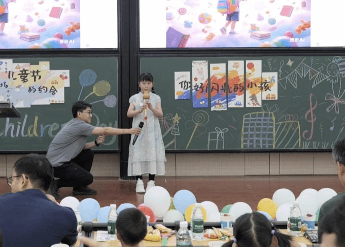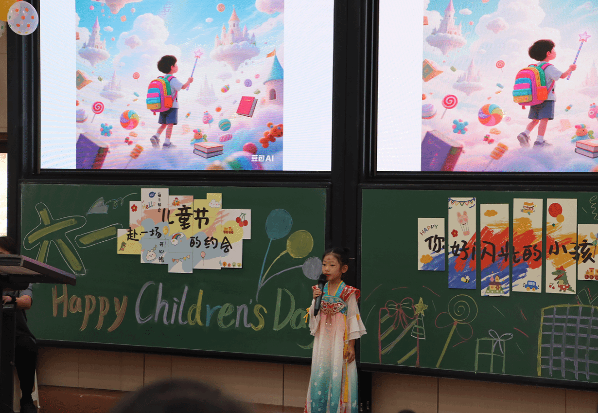 活动在古筝独奏《茉莉花》中拉开了序幕。接着,歌曲、舞蹈、朗诵、武术、说唱、乐器弹唱等节目精彩上演。孩子们在舞台上尽情展示着自己的才艺,展现出自信与活力,赢来了一阵又一阵的喝彩声,也为这个特别的节日增添了更多欢乐与惊喜。在“正话反说”、“数字宝藏”、“成语接龙”的趣味游戏中,小朋友们积极参与其中,现场气氛不断被点燃。