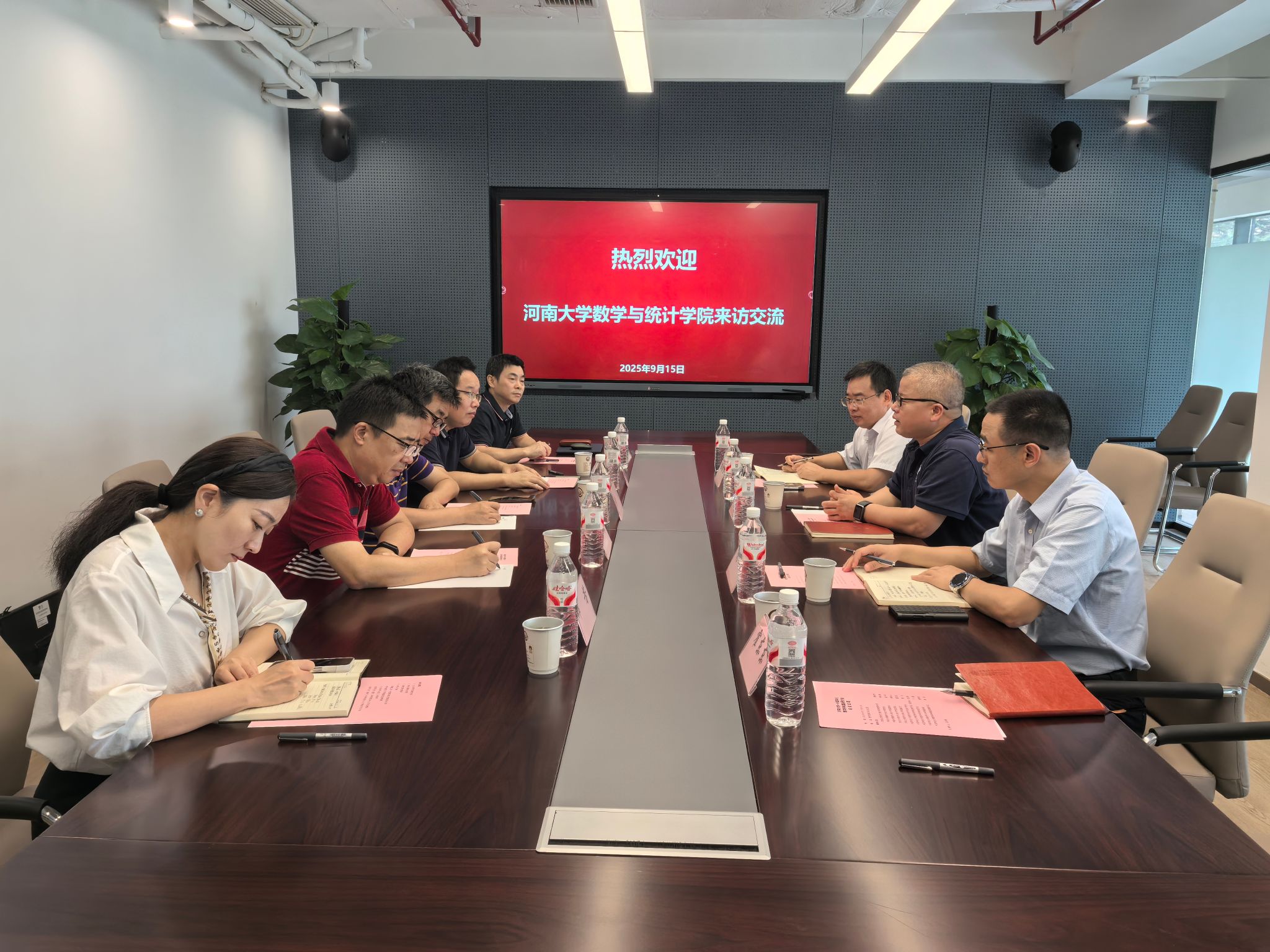 9月15日,数学与统计学院院长韩小森等一行四人赴中国科学技术大学数学科学学院调研交流。中国科学技术大学数学科学学院党委书记左达峰、执行院长黄文、副院长王毅、杨周旺、党委副书记郑芳等热情接待了调研组一行并进行了座谈交流。