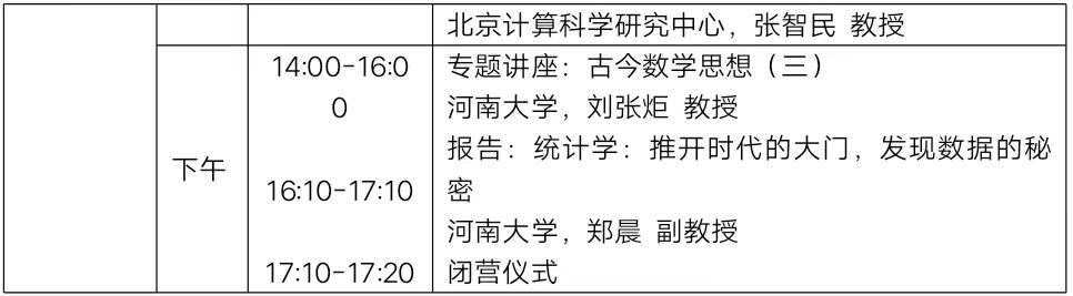为促进高校之间优秀大学生的交流和互动、给学生提供一个了解数学和统计学科各个方向最新前沿动态的机会,河南大学数学与统计学院拟定于2022年7月11日—7月16日举办大学生数学夏令营(ZOOM视频在线进行)。本次夏令营计划在全国高校范围内招收100名数学、统计学及相关专业的高年级本科生。夏令营期间将通过学术讲座、学院宣讲、导师交流等活动,旨在打造数学和统计学的学习与交流平台,同时展示我院在数学、统计等领域所取得的重要研究成果,使学生了解我院的学科发展特色和研究生培养模式。