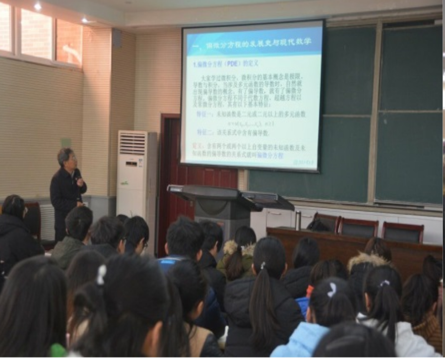 本次报告在向同学们介绍偏微分方程这一学科的同时,引出了对现代数学的介绍,在潜移默化中增强了同学们对数学的了解和认识,为同学们日后的数学专业学习指明了方向。