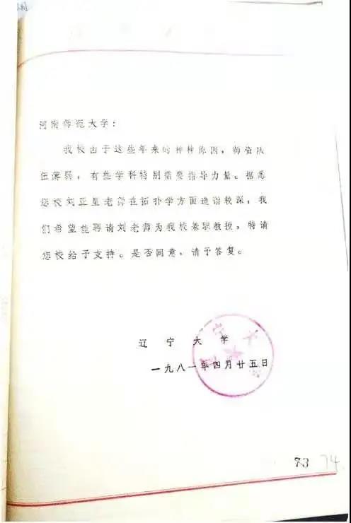 刘亚星先生受聘辽宁大学公函