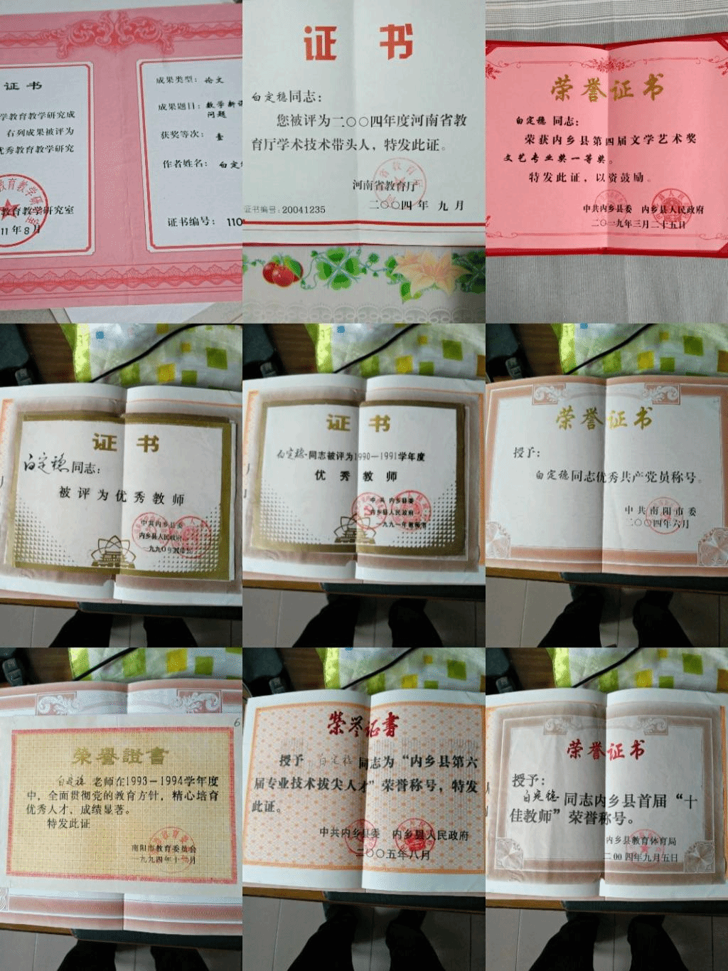 作者获得的部分荣誉证书